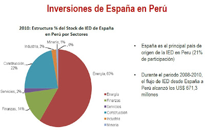 Embajador Francisco Eguiguren: Yo iría a dos aspectos, el Perú en este momento desde hace algunos pocos años tiene a España como el primer país de inversión y también la cooperación española, como la primera fuente de cooperación; eso es importante, porque eso no era así hace 5 años, hay empresas grandes españolas que ya han ido al Perú, en terrenos como: telecomunicaciones, telefonía, banca, construcción, para grandes obras de infraestructura, petróleo y etc.